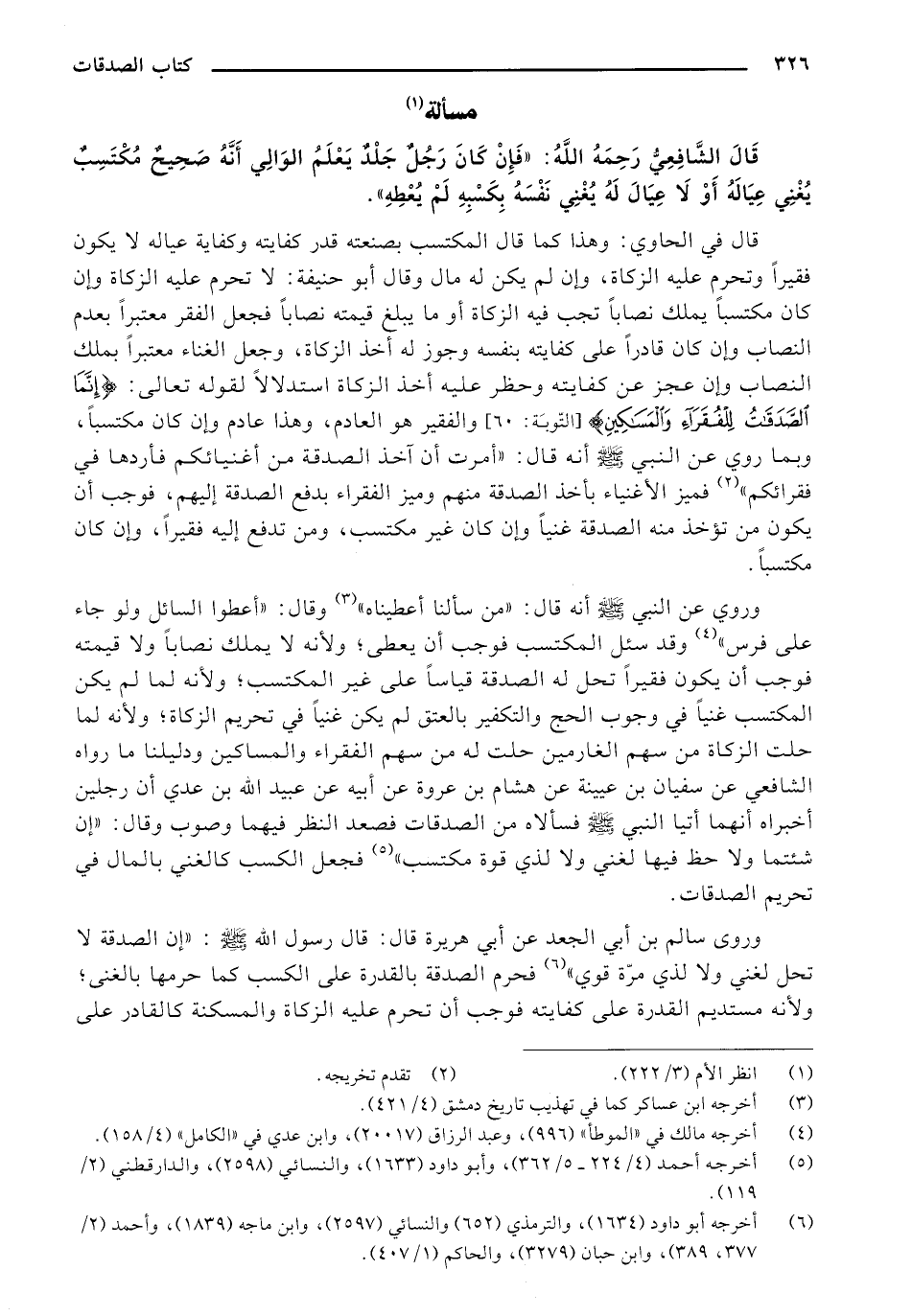قال الشافعي رحمه الله: "فإن كان رجل جلد يعلم الوالي أنه صحيح مكتسب يغني عياله أو لا عيال له يغني نفسه بكسبه لم يعطه".