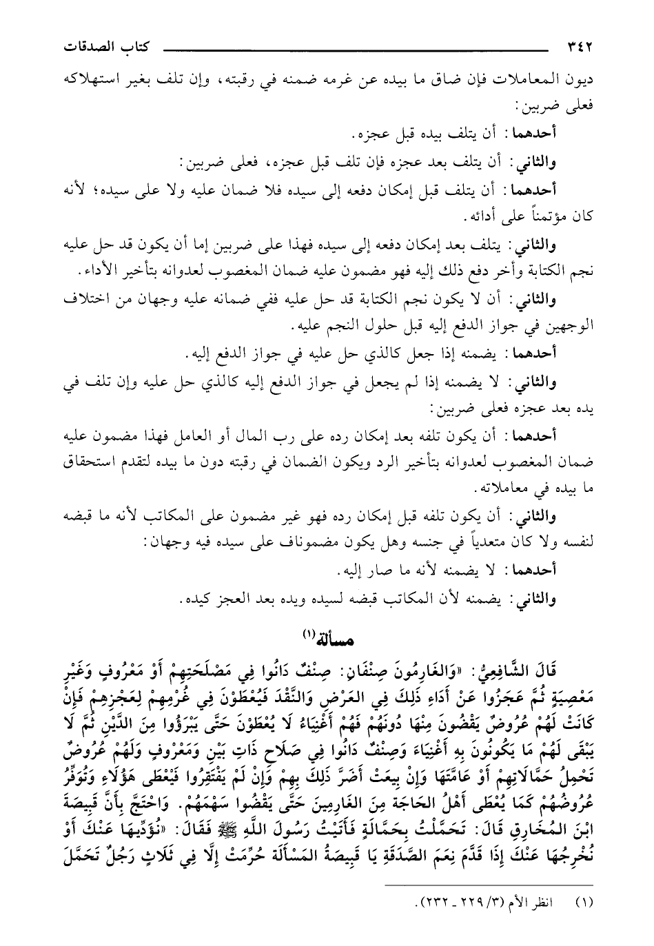 (¬1) انظر الأم (3/ 229 - 232) ,