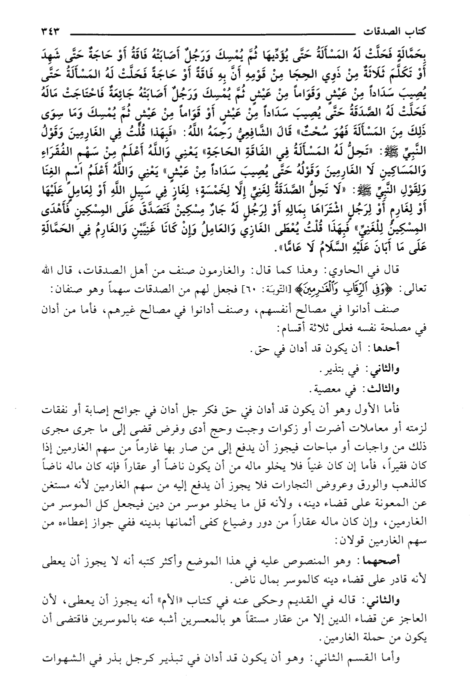 قال في الحاوي: وهذا كما قال: والغارمون صنف من أهل الصدقات، قال الله تعالى: {وَفِي الرِّقَابِ وَالْغَارِمِينَ} [التوبة:60] فجعل لهم من الصدقات سهماً وهو صنفان: صنف أدانوا في مصالح أنفسهم، وصنف أدانوا في مصالح غيرهم، فأما من أدان في مصلحة نفسه فعلى ثلاثة أقسام: