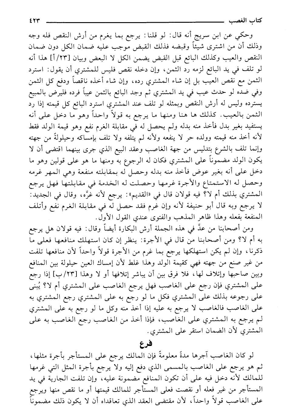 ومن أصحابنا من عدَّ في هذه الجملة أرش البكارة أيضاً وقال: فيه قولان هل يرجع به أم لا؟ ومن أصحابنا من قال في الأجرة: ينظر إن كان استهلك منافعها فعلى ما ذكرنا، وإن لم يكن استهلكها يرجع بما غرم من الأجرة قولاً واحداً لأن منافعها تلفت من غير صنع من جهته فهي كقيمة الولد وهذا غلط لأن إمساك العين حيلولة بين المنافع وبين صاحبها وإتلاف لها، فلا فرق بين أن يباشر إتلافها أو لا وهذا [23/ب] إذا رجح على المشتري فإن رجع على الغاصب فهل يرجع الغاصب على المشتري أم لا؟ يبُنى على رجوعه بذلك على المشتري فكل ما لو رجع به على المشتري رجع المشتري به على الغاصب فالغاصب لا يرجع به عليه إذا أخذ منه وكل ما لو رجع به على المشتري لم يرجع به المشتري على الغاصب، فإذا أخذ من الغاصب رجع الغاصب به على المشتري لأن الضمان استقر على المشتري.
