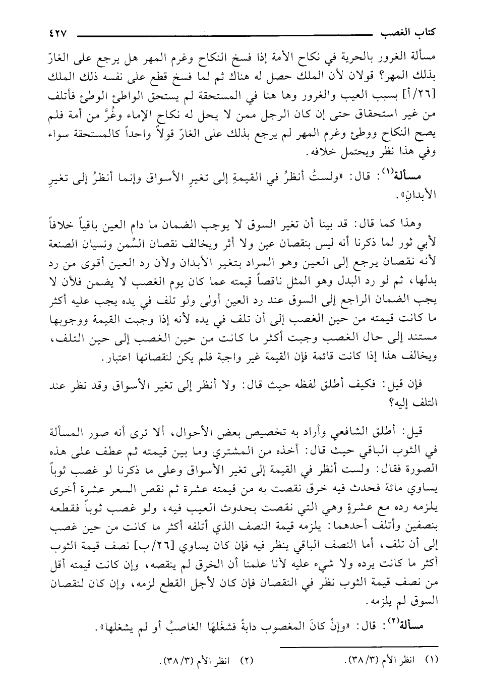 مسألة (¬1): قال: "ولستُ أنظرُ في القيمةِ إلى تغيرِ الأسواق وإنما أنظرُ إلى تغيرِ الأبدانِ".
