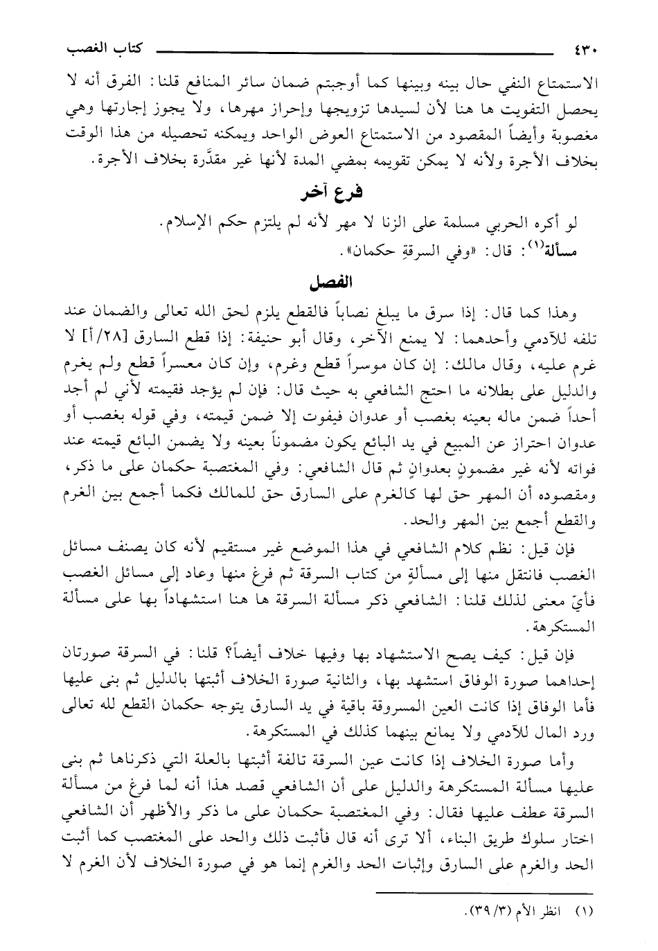 وأما صورة الخلاف إذا كانت عين السرقة تالفة أثبتها بالعلة التي ذكرناها ثم بني عليها مسألة المستكرهة والدليل على أن الشافعي قصد هذا أنه لما فرغ من مسألة السرقة عطف عليها فقال: وفي المغتصبة حكمان على ما ذكر والأظهر أن الشافعي اختار سلوك طريق البناء، ألا ترى أنه قال فأثبت ذلك والحد على المغتصب كما أثبت الحد والغرم على السارق وإثبات الحد والغرم إنما هو في صورة الخلاف لأن الغرم لا