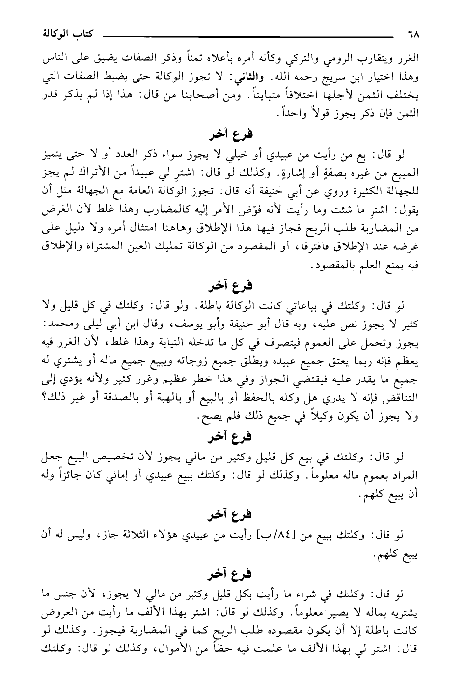 لو قال: وكلتك في شراء ما رأيت بكل قليل وكثير من مالي لا يجوز، لأن جنس ما يشتريه بماله لا يصير معلومًا. وكذلك لو قال: اشتر بهذا الألف ما رأيت من العروض كانت باطلة إلا أن يكون مقصوده طلب الربح كما في المضاربة فيجوز. وكذلك لو قال: اشتر لي بهذا الألف ما علمت فيه حظًا من الأموال، وكذلك لو قال: وكلتك