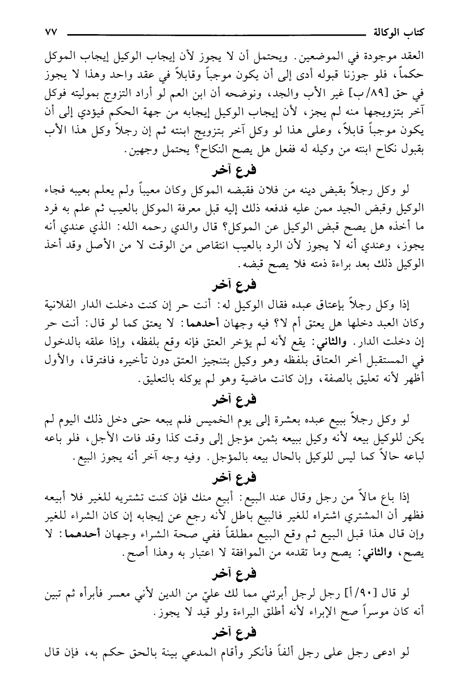 العقد موجودة في الموضعين. ويحتمل أن لا يجوز لأن إيجاب الوكيل إيجاب الموكل حكمًا، فلو جوزنا قبوله أدى إلى أن يكون موجبًا وقابلًا في عقد واحد وهذا لا يجوز في حق [89 / ب] غير الأب والجد، ونوضحه أن ابن العم لو أراد التزوج بموليته فوكل آخر بتزويجها منه لم يجز، لأن إيجاب الوكيل إيجابه من جهة الحكم فيؤدي إلى أن يكون موجبًا قابلًا، وعلى هذا لو وكل آخر بتزويج ابنته ثم إن رجلًا وكل هذا الأب بقبول نكاح ابنته من وكيله له ففعل هل يصح النكاح؟ يحتمل وجهين.