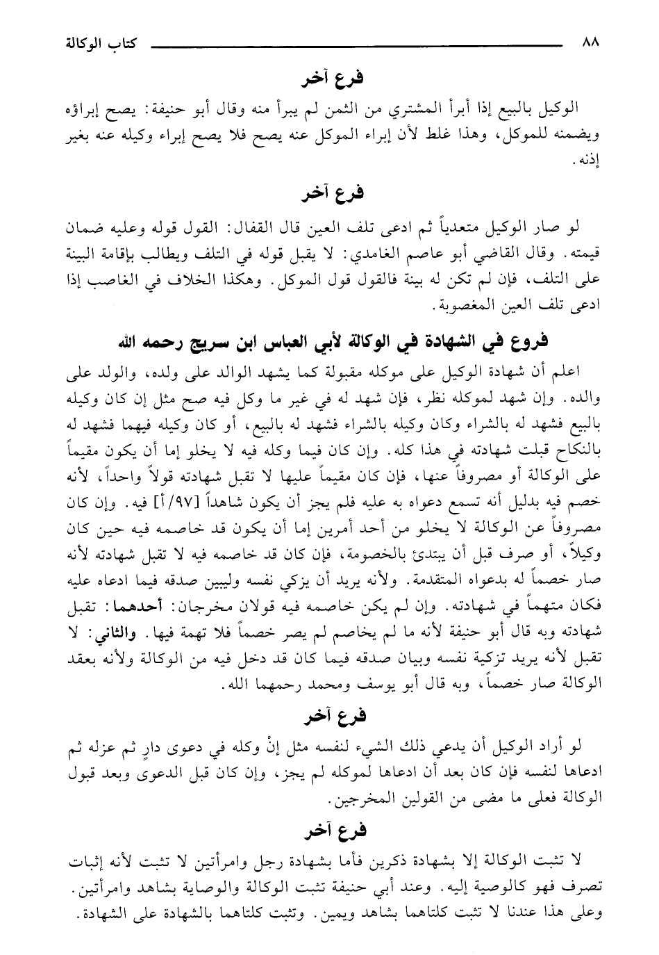فروع في الشهادة في الوكالة لأبي العباس ابن سريج رحمه الله