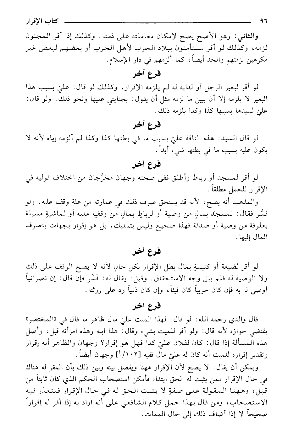 والثاني: وهو الأصح يصح لإمكان معاملته على ذمته. وكذلك إذا أقر المجنون لزمه، وكذلك لو أقر مستأمنون ببلاد الحرب لأهل الحرب أو بعضهم لبعض غير مكرهين لزمتهم والحد أيضاً، كما ألزمهم في داو الإسلام.