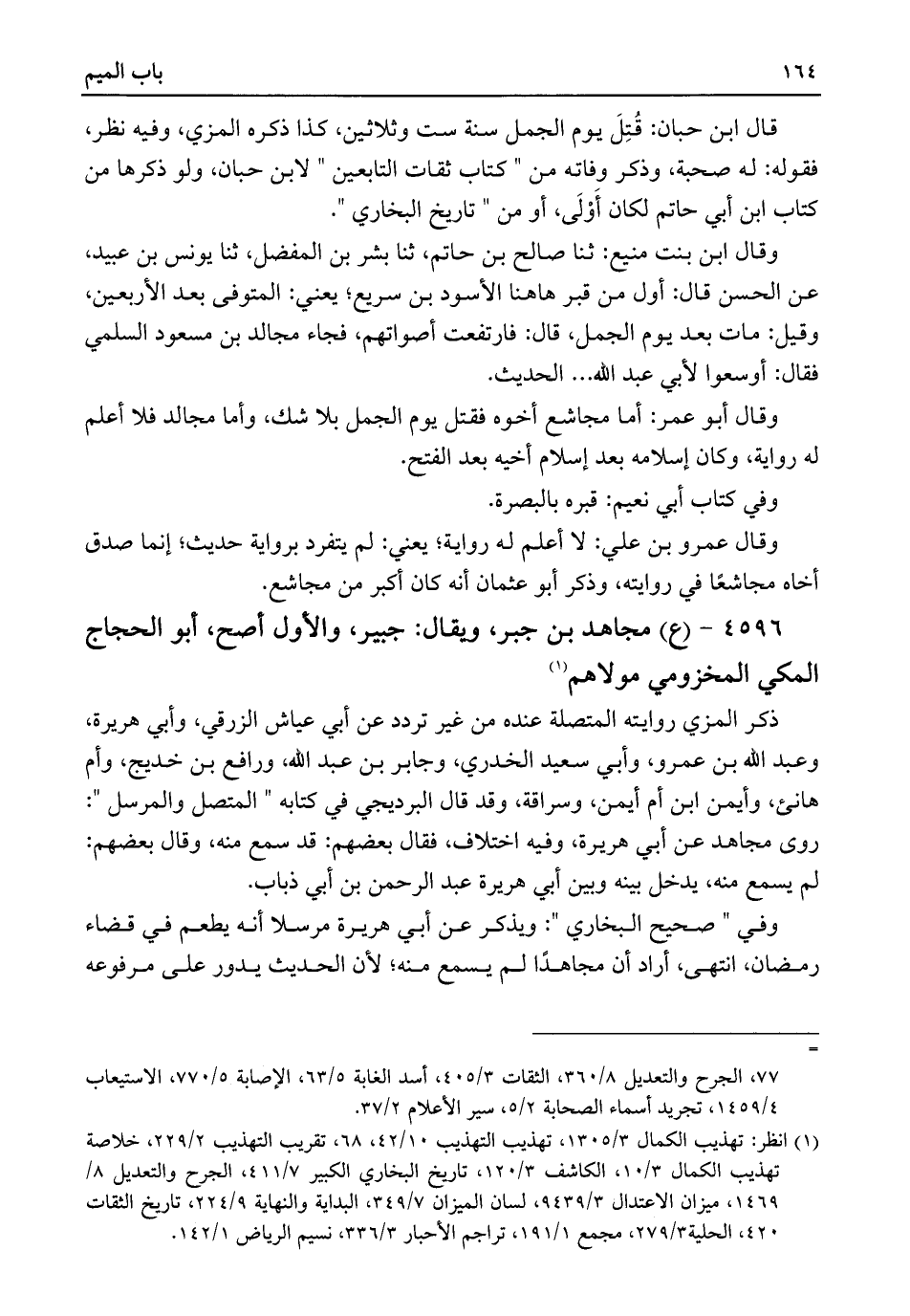 ٤٥٩٦ - (ع) مجاهد بن جبر، ويقال: جبير، والأول أصح، أبو الحجاج المكي المخزومي مولاهم (¬١)