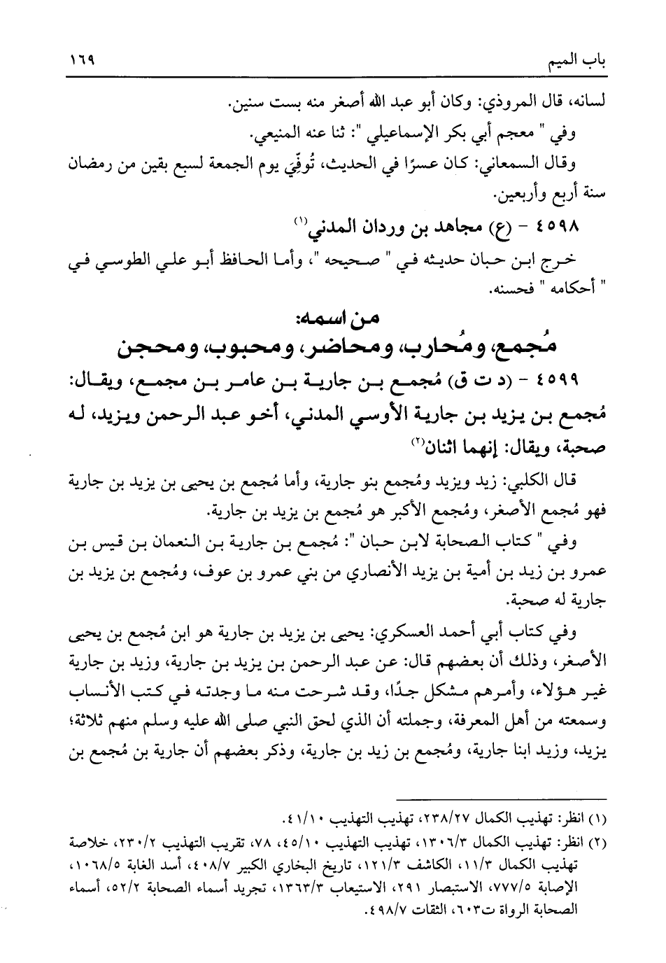 ٤٥٩٩ - (د ت ق) مُجمع بن جارية بن عامر بن مجمع، ويقال: مُجمع بن يزيد بن جارية الأوسي المدني، أخو عبد الرحمن ويزيد، له صحبة، ويقال: إنهما اثنان (¬٢)
