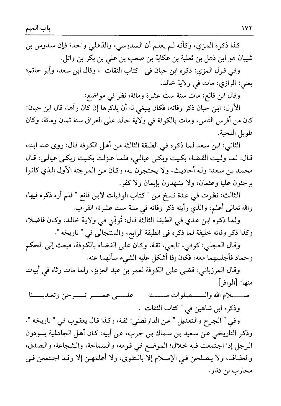 وفي قول المزي: ذكره ابن حبان في "كتاب الثقات"، وقال ابن سعد، وأبو حاتم؛ يعني: الرازي: مات في ولاية خالد.