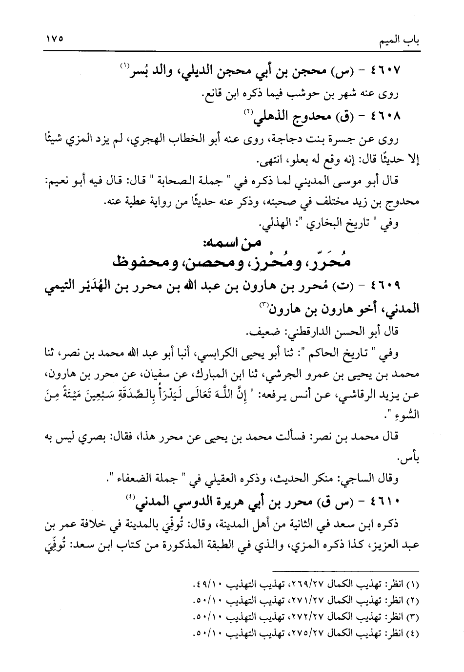 (¬٤) انظر: تهذيب الكمال ٢٧/ ٢٧٥، تهذيب التهذيب ١٠/ ٥٠.