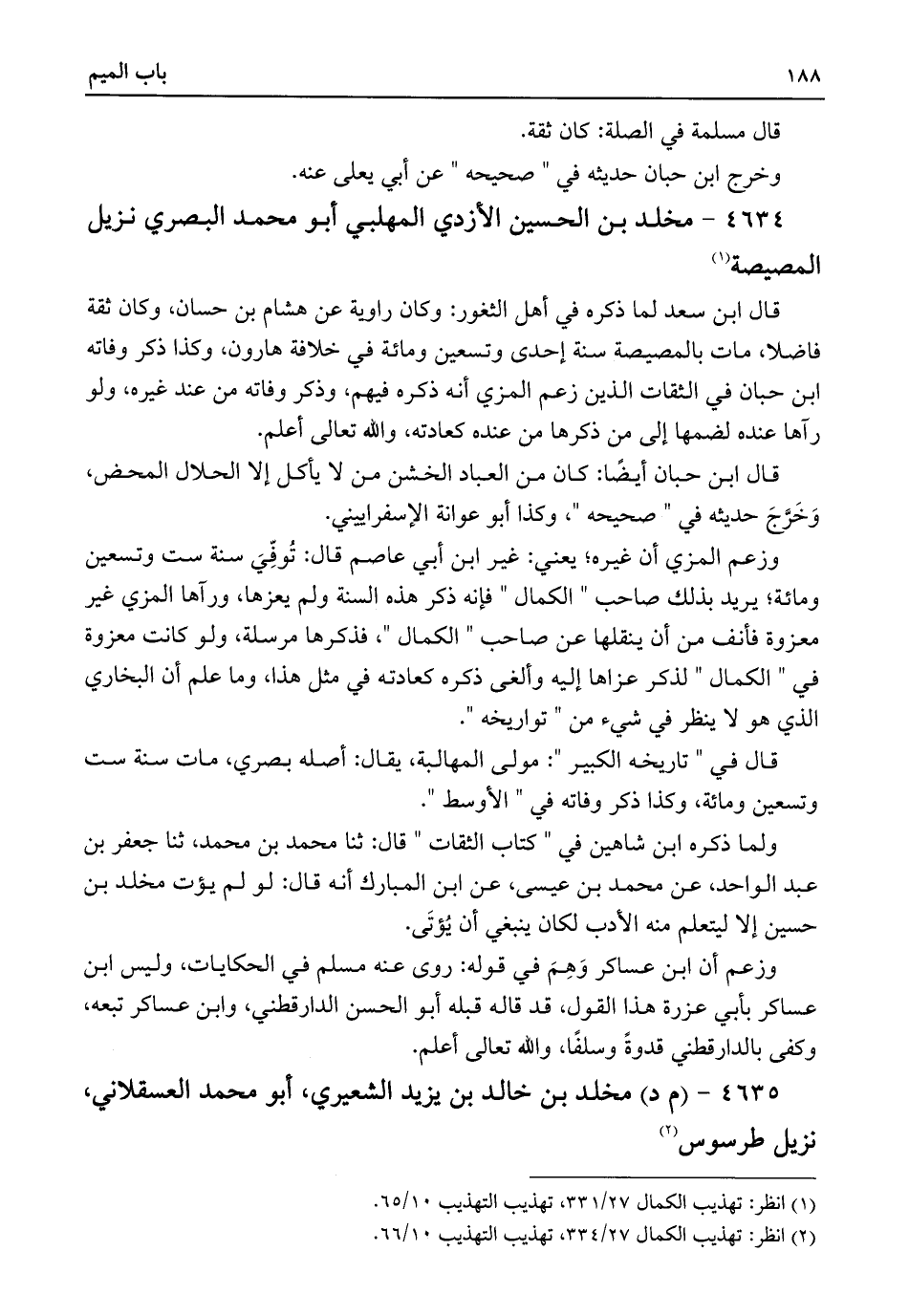 (¬٢) انظر: تهذيب الكمال ٢٧/ ٣٣٤، تهذيب التهذيب ١٠/ ٦٦.