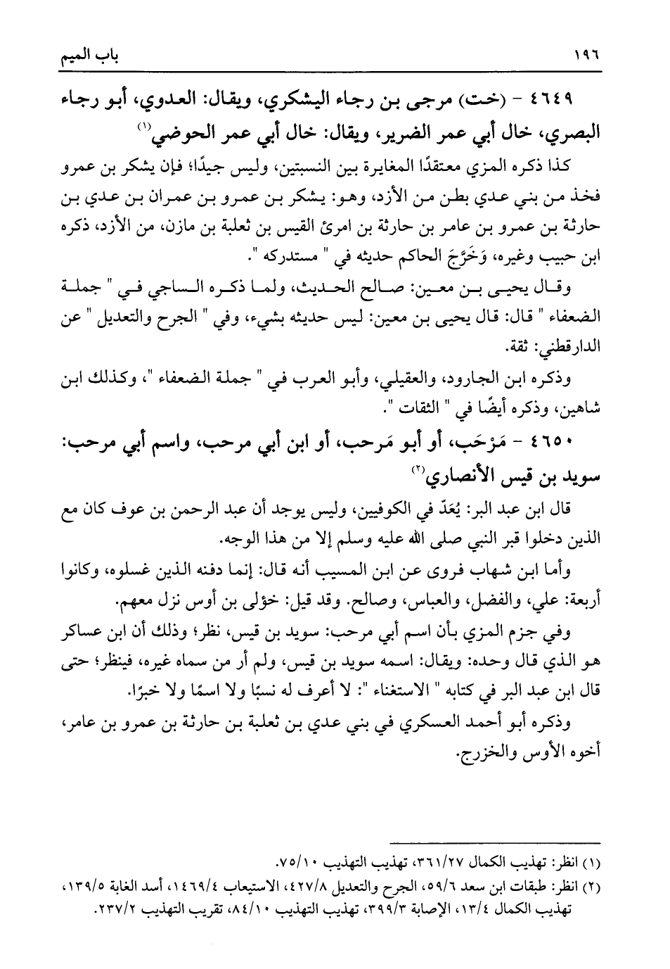٤٦٤٩ - (خت) مرجى بن رجاء اليشكري، ويقال: العدوي، أبو رجاء البصري، خال أبي عمر الضرير، ويقال: خال أبي عمر الحوضي (¬١)