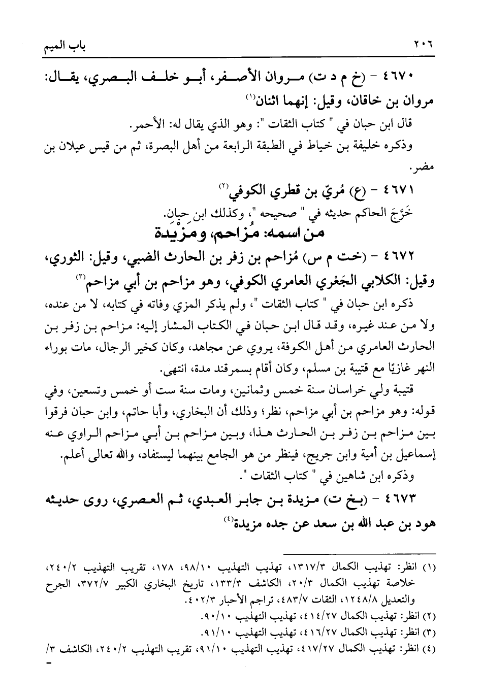 ٤٦٧٢ - (خت م س) مُزاحم بن زفر بن الحارث الضبي، وقيل: الثوري، وقيل: الكلابي الجَعْري العامري الكوفي، وهو مزاحم بن أبي مزاحم (¬٣)
