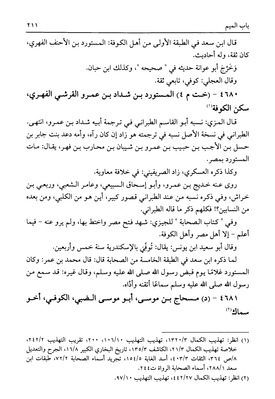 ٤٦٨٠ - (خت م ٤) المستورد بن شداد بن عمرو القرشي الفهري، سكن الكوفة (¬١)