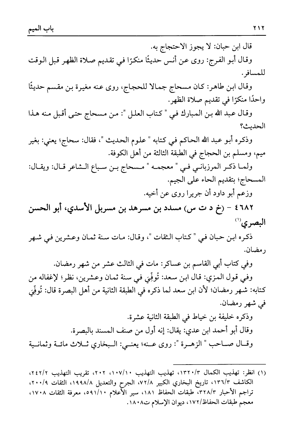 ٤٦٨٢ - (خ د ت س) مسدد بن مسرهد بن مسربل الأسدي، أبو الحسن البصري (¬١)