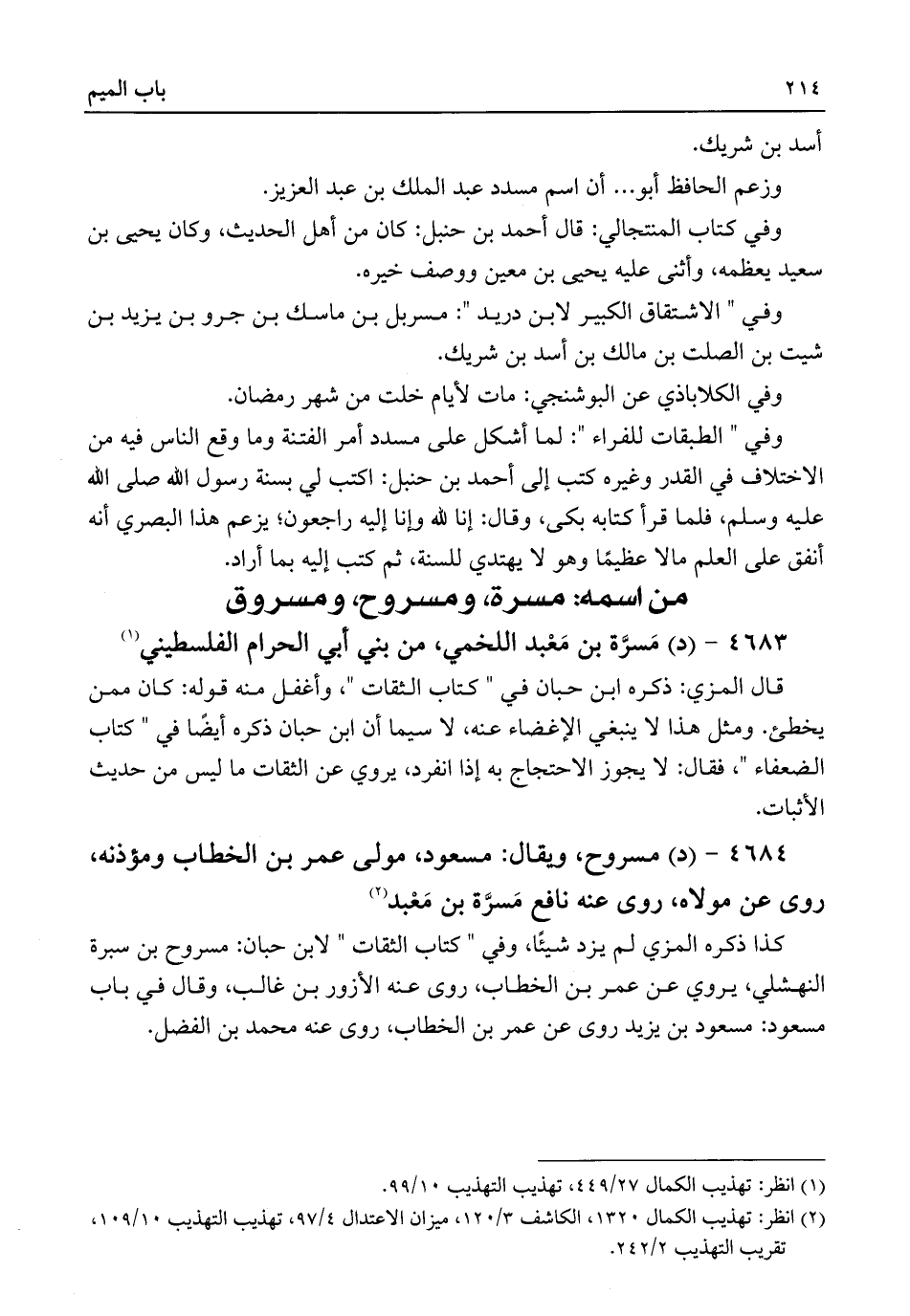 (¬١) انظر: تهذيب الكمال ٢٧/ ٤٤٩، تهذيب التهذيب ١٠/ ٩٩.