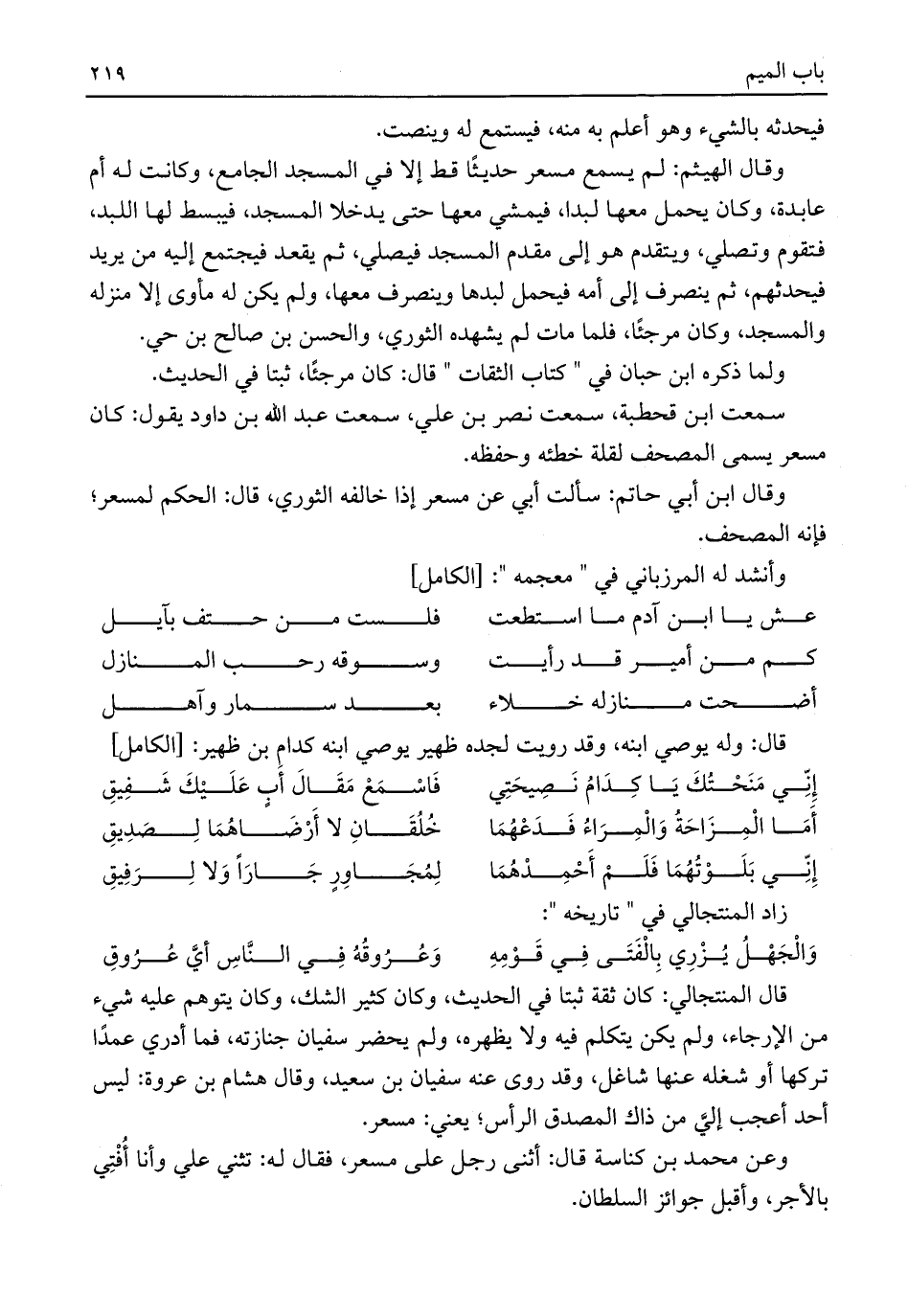 وأنشد له المرزباني في "معجمه": [الكامل]