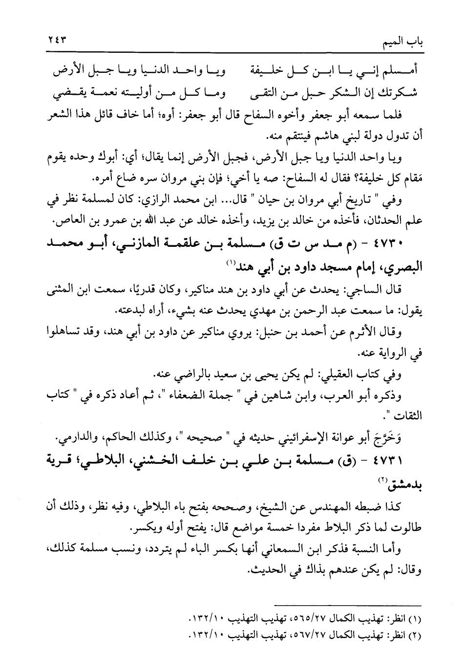 (¬١) انظر: تهذيب الكمال ٢٧/ ٥٦٥، تهذيب التهذيب ١٠/ ١٣٢.