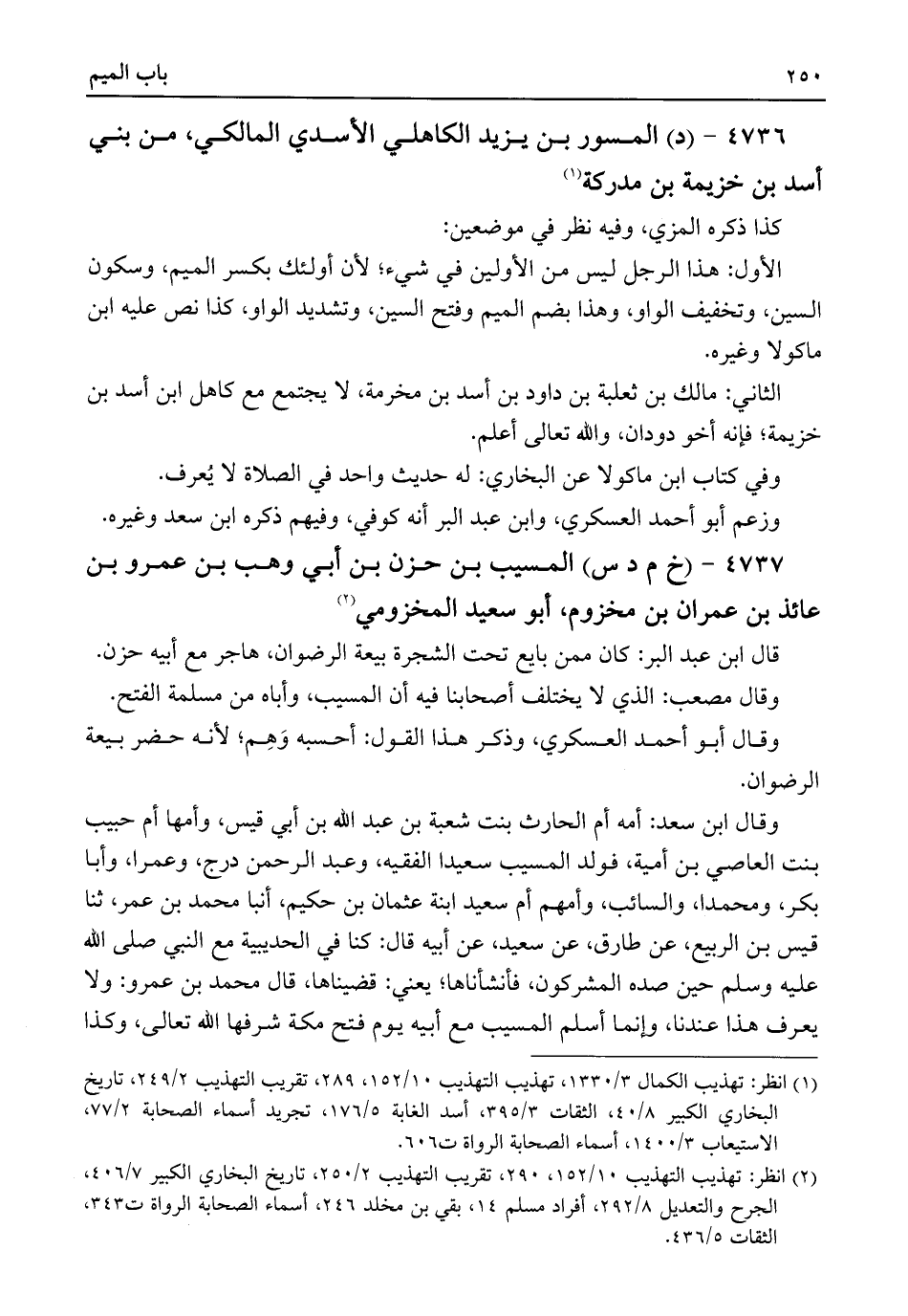٤٧٣٦ - (د) المسور بن يزيد الكاهلي الأسدي المالكي، من بني أسد بن خزيمة بن مدركة (¬١)