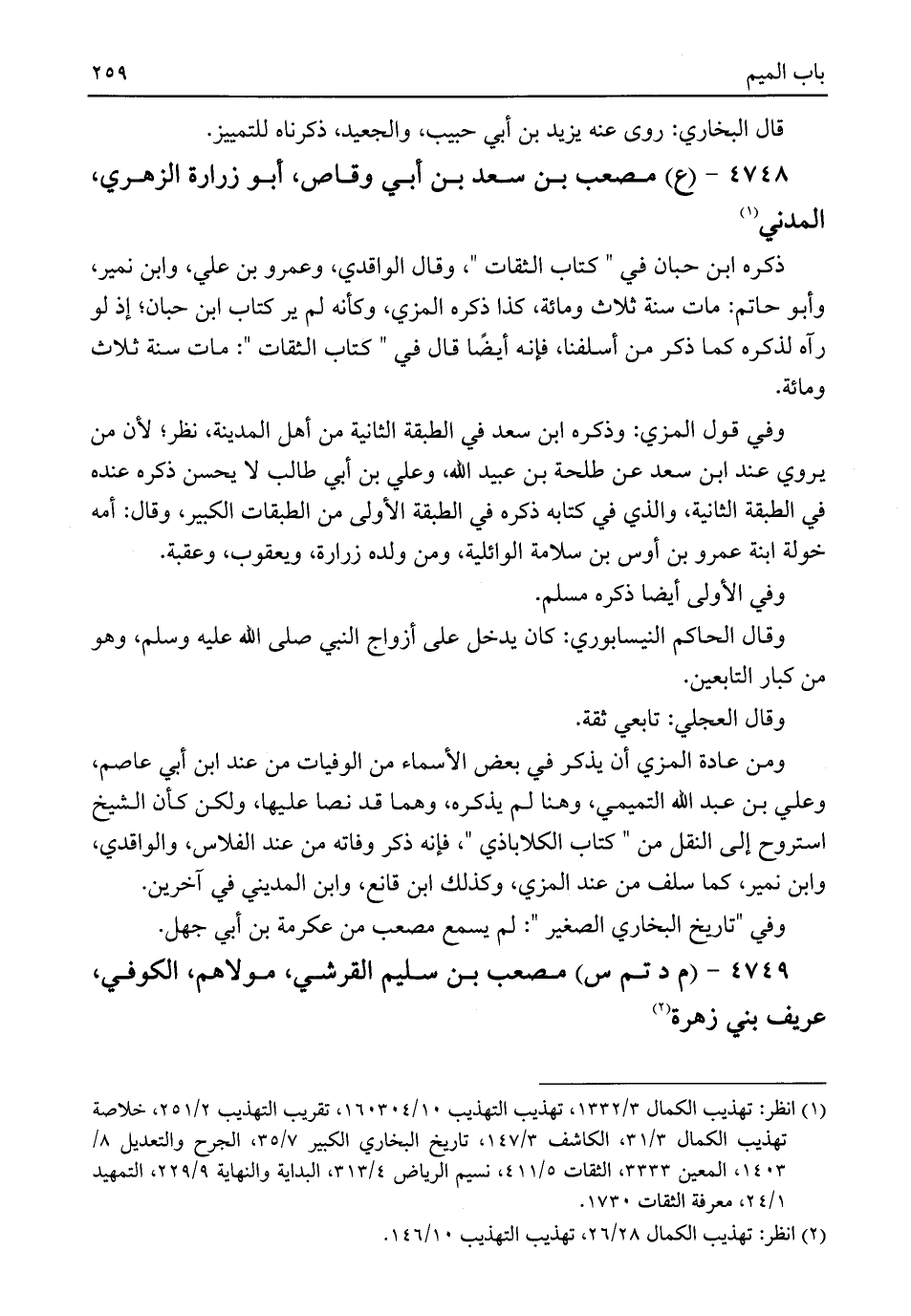٤٧٤٨ - (ع) مصعب بن سعد بن أبي وقاص، أبو زرارة الزهري، المدني (¬١)