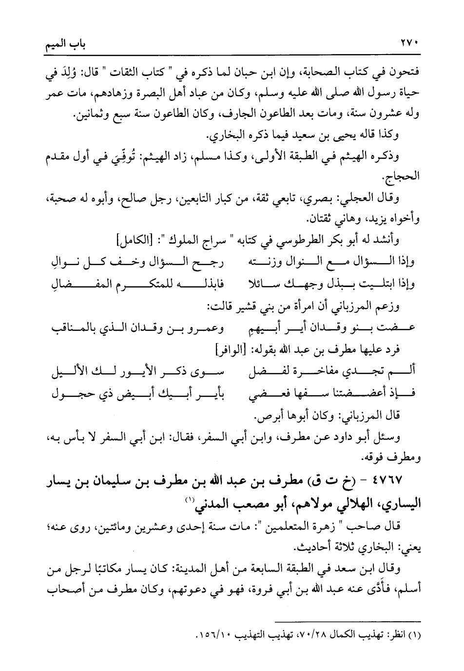 (¬١) انظر: تهذيب الكمال ٢٨/ ٧٠، تهذيب التهذيب ١٠/ ١٥٦.