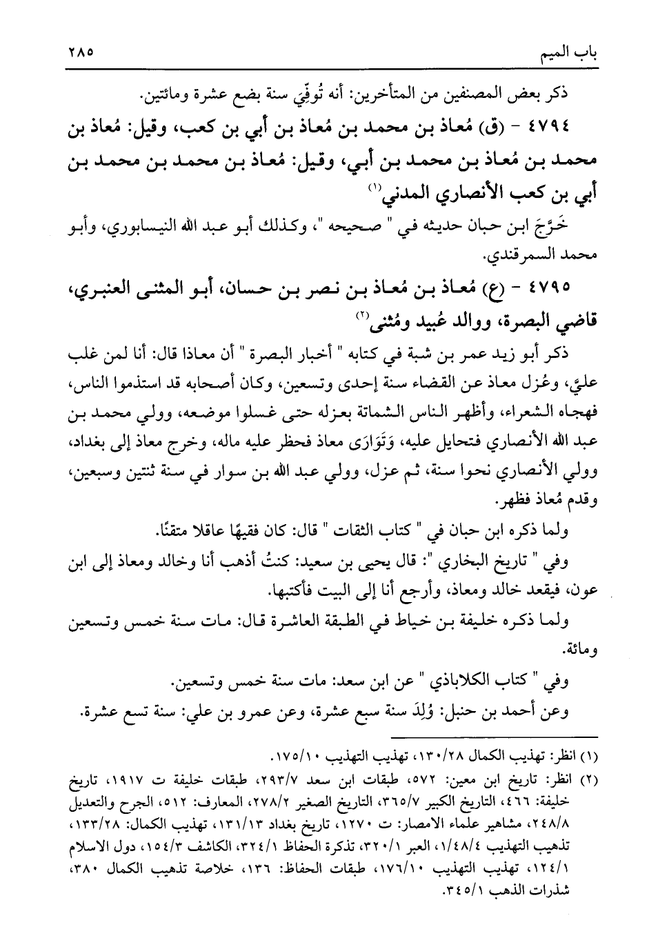 ٤٧٩٥ - (ع) مُعاذ بن مُعاذ بن نصر بن حسان، أبو المثنى العنبري، قاضي البصرة، ووالد عُبيد ومُثنى (¬٢)