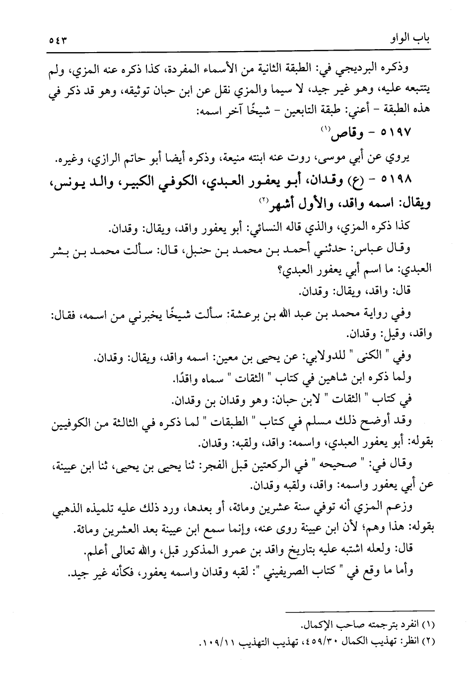 وقد أوضح ذلك مسلم في كتاب "الطبقات" لما ذكره في الثالثة من الكوفيين بقوله: أبو يعفور العبدي، واسمه: واقد، ولقبه: وقدان.