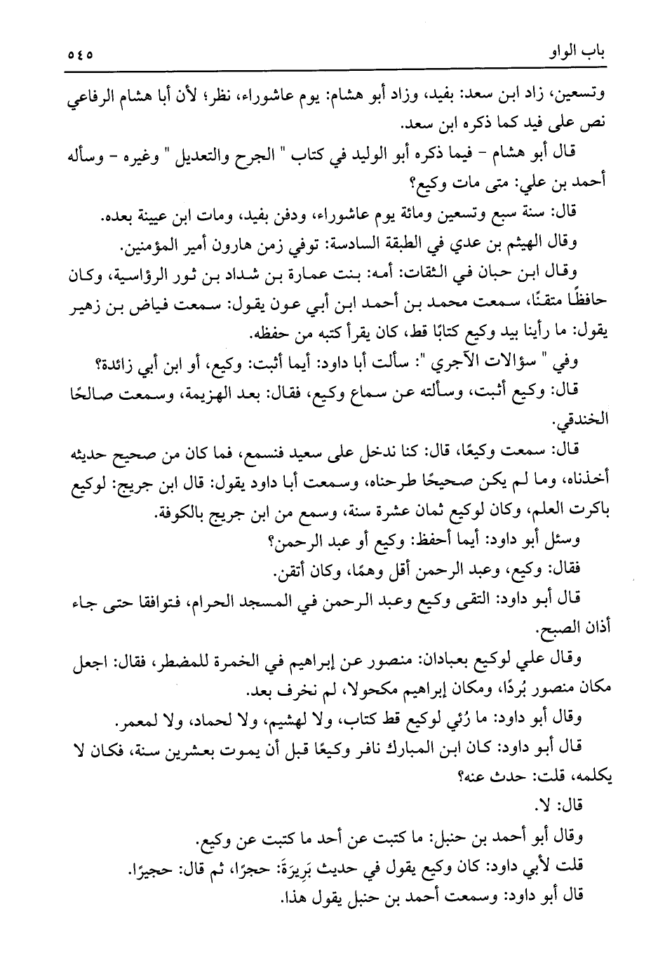 وقال أبو داود: ما رُئي لوكيع قط كتاب، ولا لهشيم، ولا لحماد، ولا لمعمر.