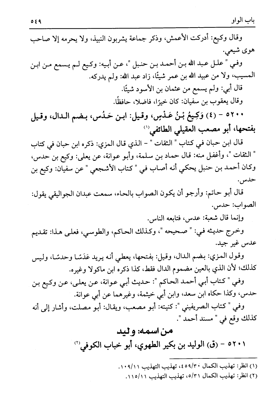٥٢٠٠ - (٤) وَكِيعُ بْنُ عَدْسٍ، وقيل: ابن حَدُس، بضم الدال، وقيل بفتحها، أبو مصعب العقيلي الطائفي (¬١)