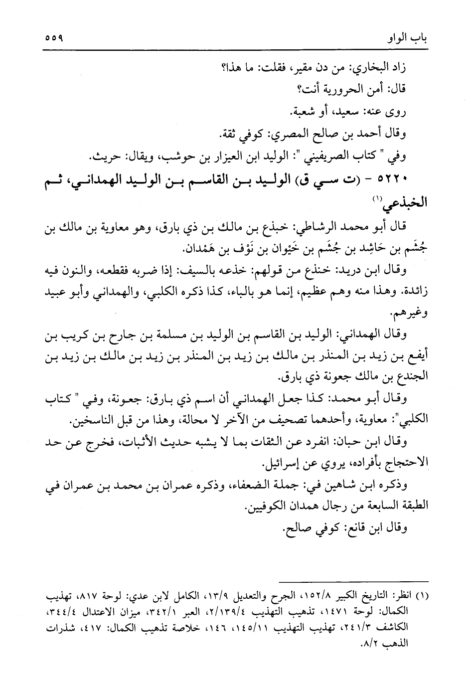 ٥٢٢٠ - (ت سي ق) الوليد بن القاسم بن الوليد الهمداني، ثم الخبذعي (¬١)