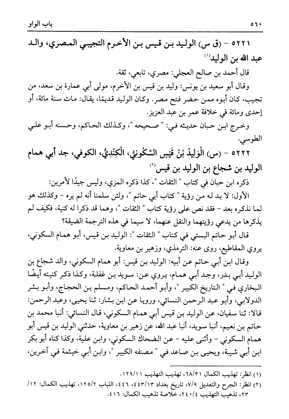 ٥٢٢٢ - (س) الْوَلِيدُ بْن قَيْسٍ السَّكُونِيُّ، الْكِنْدِيُّ، الكوفي، جد أبي همام الوليد بن شجاع بن الوليد بن قيس (¬٢)