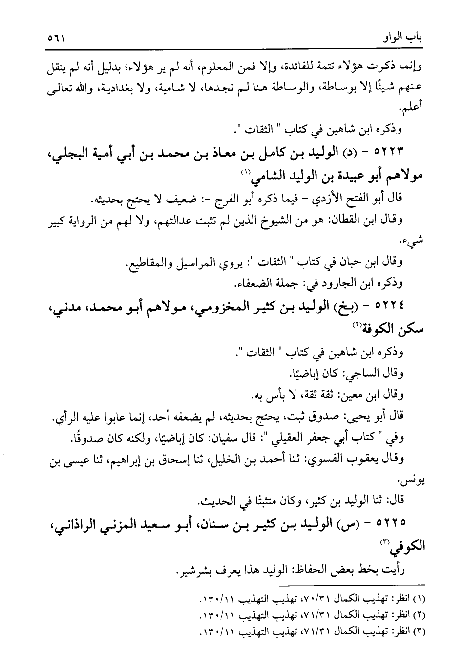 ٥٢٢٣ - (د) الوليد بن كامل بن معاذ بن محمد بن أبي أمية البجلي، مولاهم أبو عبيدة بن الوليد الشامي (¬١)