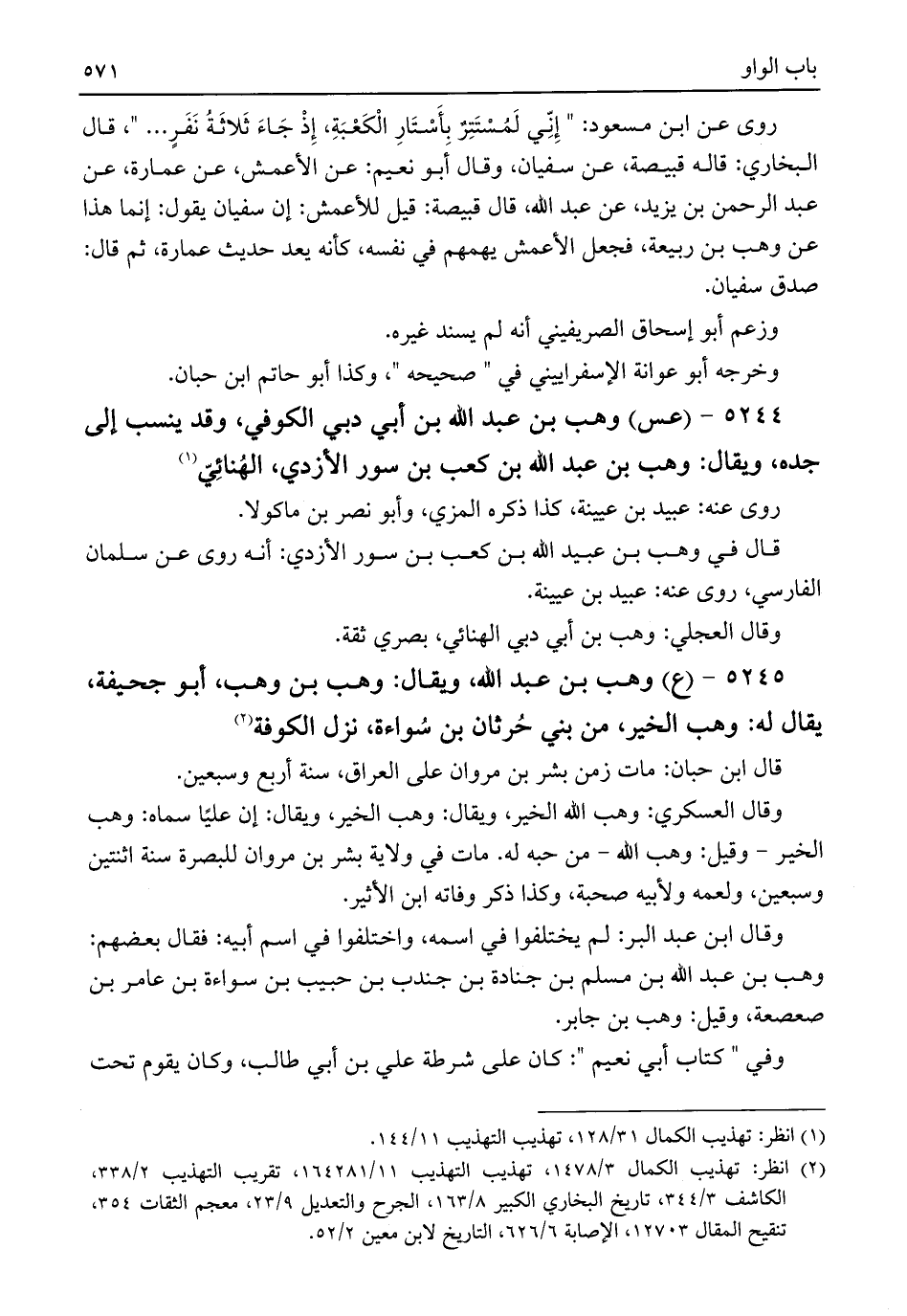 (¬٢) انظر: تهذيب الكمال ٣/ ١٤٧٨، تهذيب التهذيب ١١/ ١٦٤، ٢٨١، تقريب التهذيب ٢/ ٣٣٨، الكاشف ٣/ ٣٤٤، تاريخ البخاري الكبير ٨/ ١٦٣، الجرح والتعديل ٩/ ٢٣، معجم الثقات ٣٥٤، تنقيح المقال ١٢٧٠٣، الإصابة ٦/ ٦٢٦، التاريخ لابن معين ٢/ ٥٢.