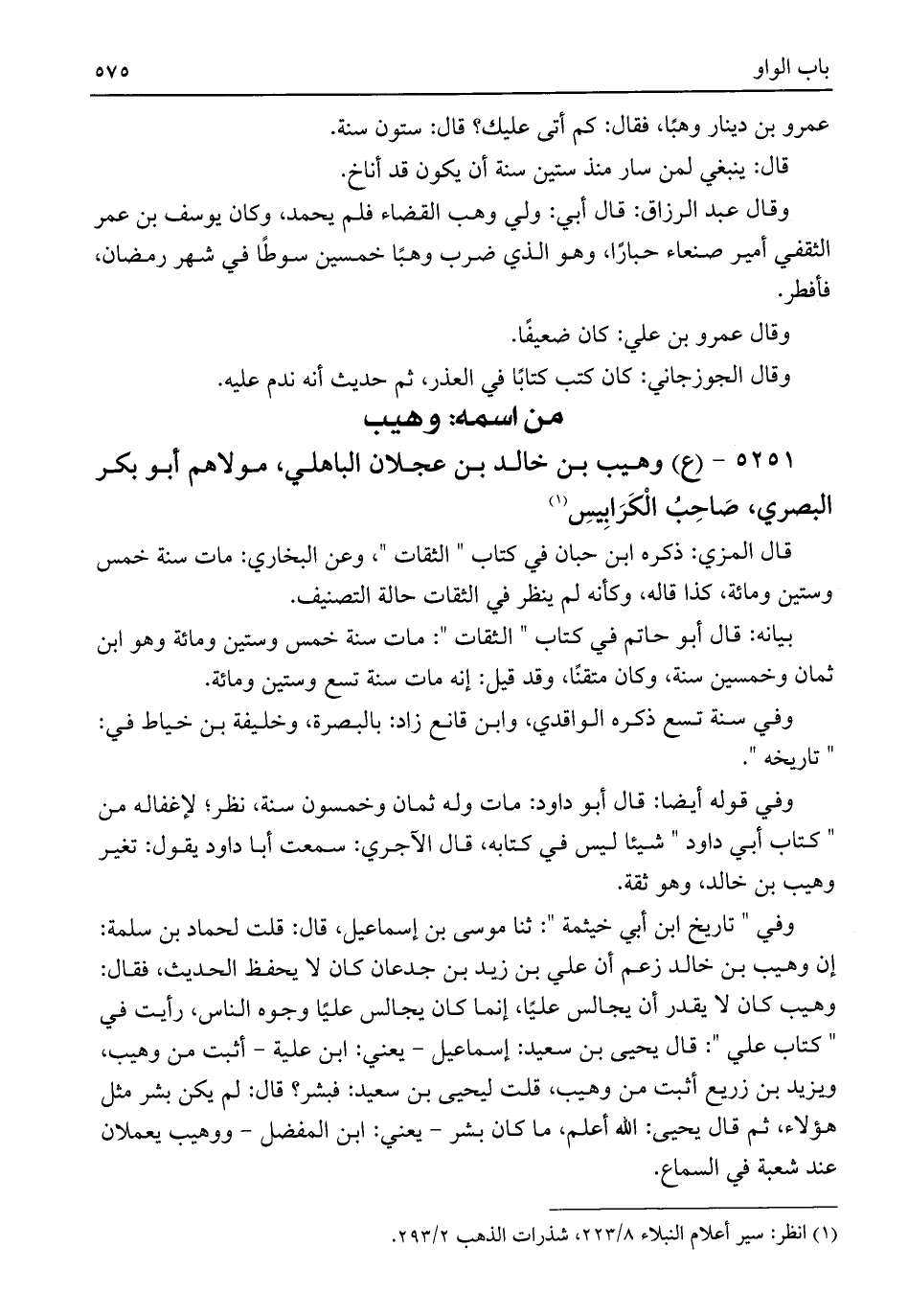 ٥٢٥١ - (ع) وهيب بن خالد بن عجلان الباهلي، مولاهم أبو بكر البصري، صَاحِبُ الْكَرَابِيسِ (¬١)