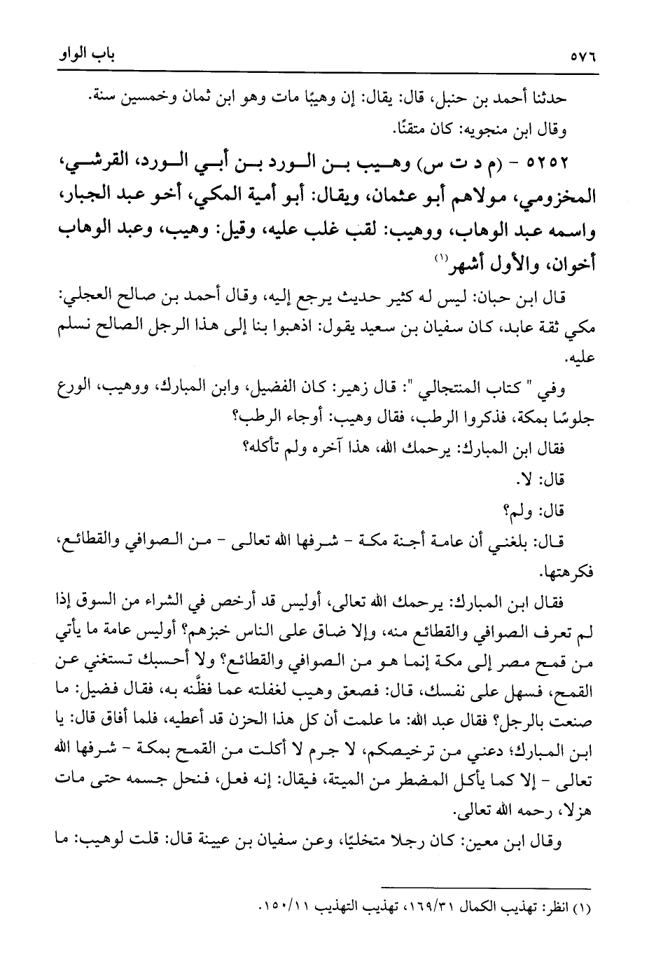 وفي "كتاب المنتجالي": قال زهير: كان الفضيل، وابن المبارك، ووهيب، الورع جلوسًا بمكة، فذكروا الرطب، فقال وهيب: أوجاء الرطب؟