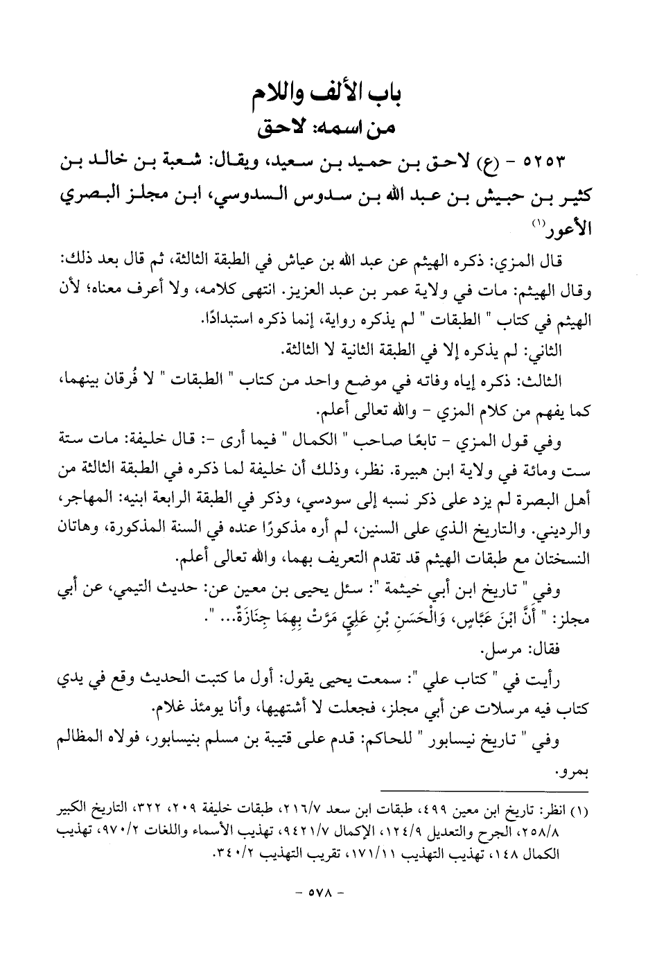 ٥٢٥٣ - (ع) لاحق بن حميد بن سعيد، ويقال: شعبة بن خالد بن كثير بن حبيش بن عبد اللَّه بن سدوس السدوسي، ابن مجلز البصري الأعور (¬١)