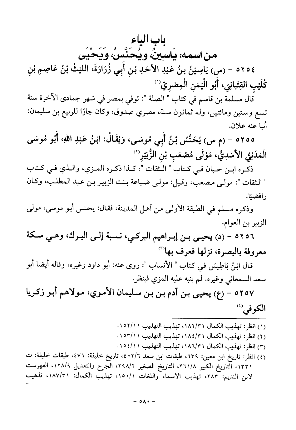 (¬١) انظر: تهذيب الكمال ٣١/ ١٨٢، تهذيب التهذيب ١١/ ١٥٢.