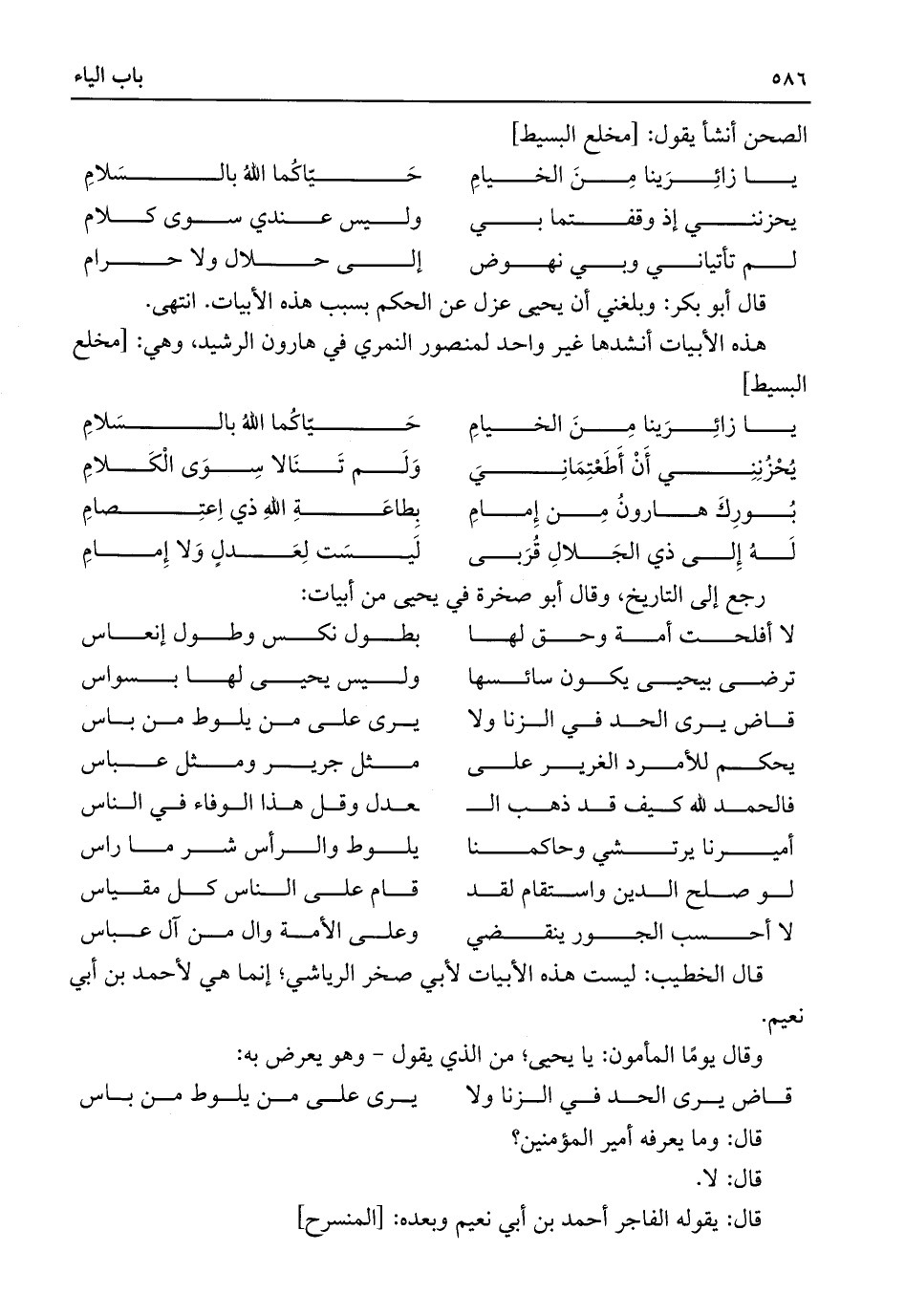 رجع إلى التاريخ، وقال أبو صخرة في يحيى من أبيات: