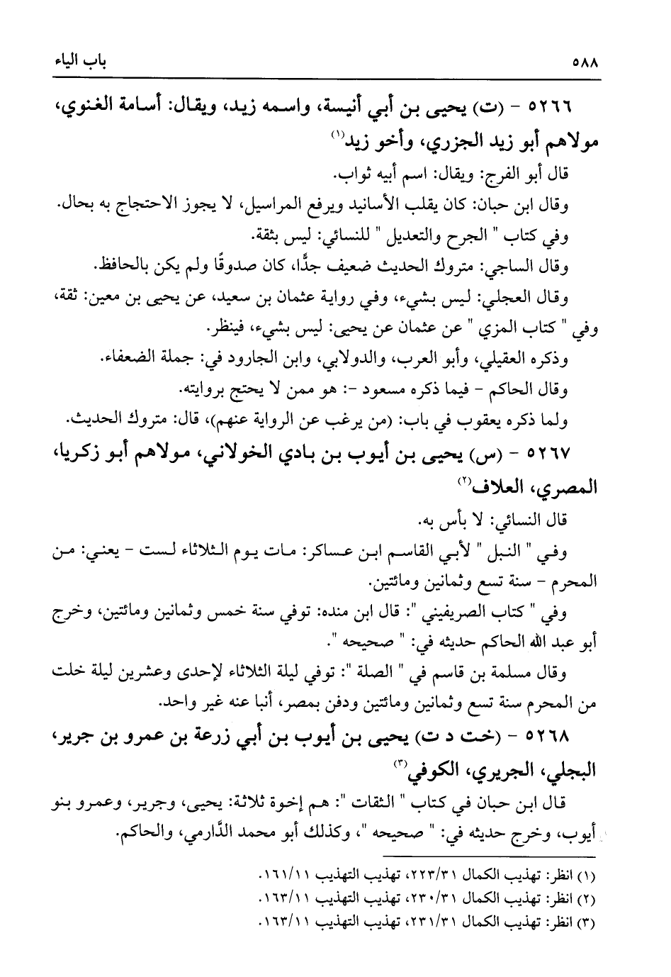 ٥٢٦٦ - (ت) يحيى بن أبي أنيسة، واسمه زيد، ويقال: أسامة الغنوي، مولاهم أبو زيد الجزري، وأخو زيد (¬١)
