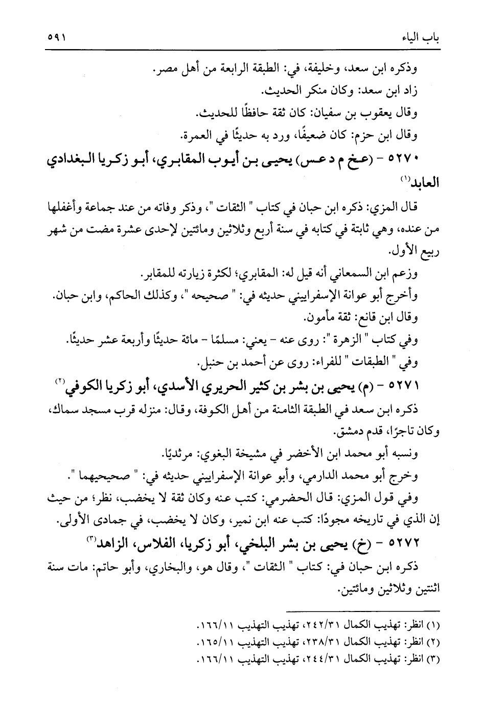 (¬٣) انظر: تهذيب الكمال ٣١/ ٢٤٤، تهذيب التهذيب ١١/ ١٦٦.