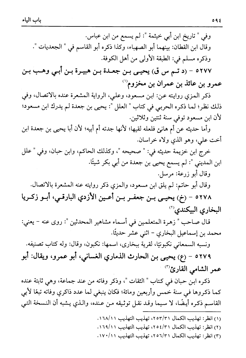 (¬٣) انظر: تهذيب الكمال ٣١/ ٢٥٦، تهذيب التهذيب ١١/ ١٧٠.
