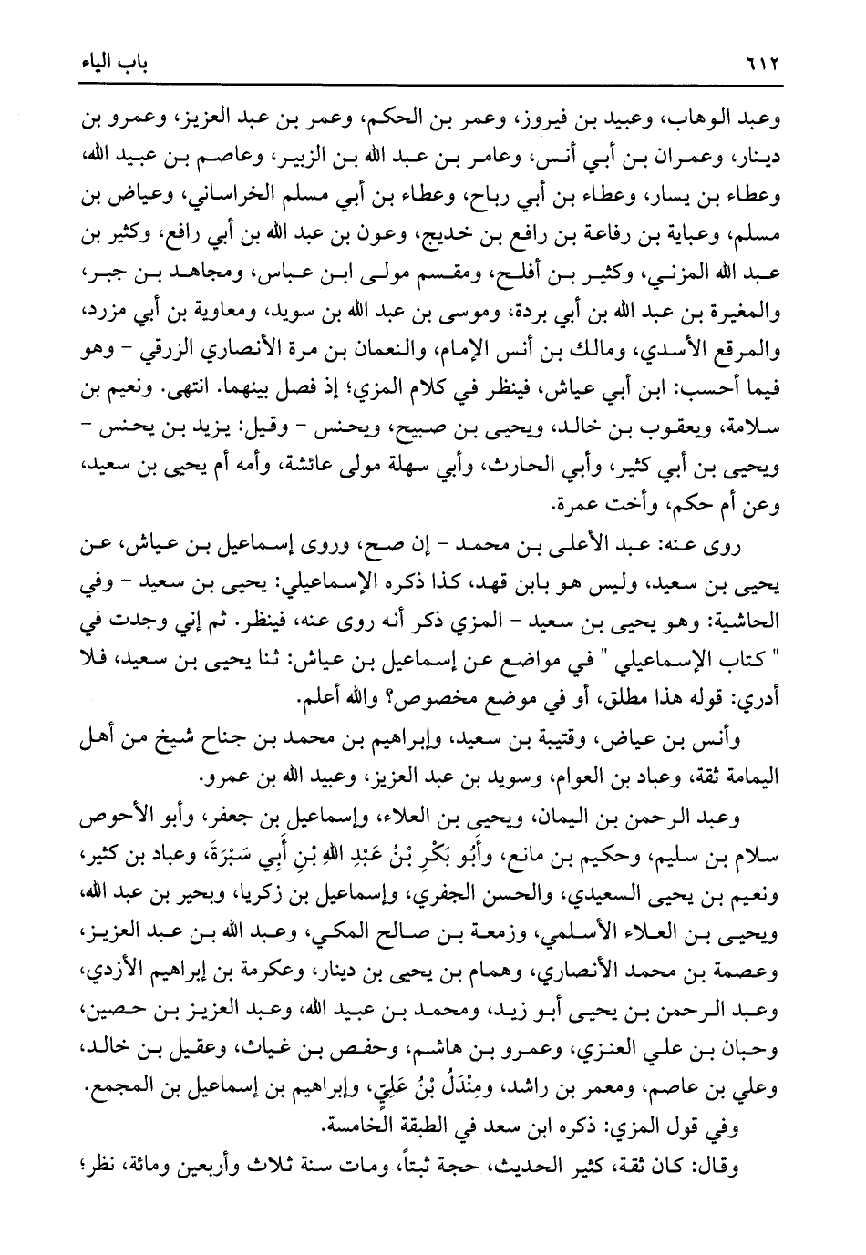 روى عنه: عبد الأعلى بن محمد - إن صح، وروى إسماعيل بن عياش، عن يحيى بن سعيد، وليس هو بابن قهد، كذا ذكره الإسماعيلي: يحيى بن سعيد -وفي الحاشية: وهو يحيى بن سعيد- المزي ذكر أنه روى عنه، فينظر. ثم إني وجدت في "كتاب الإسماعيلي" في مواضع عن إسماعيل بن عياش: ثنا يحيى بن سعيد، فلا أدري: قوله هذا مطلق، أو في موضع مخصوص؟ واللَّه أعلم.