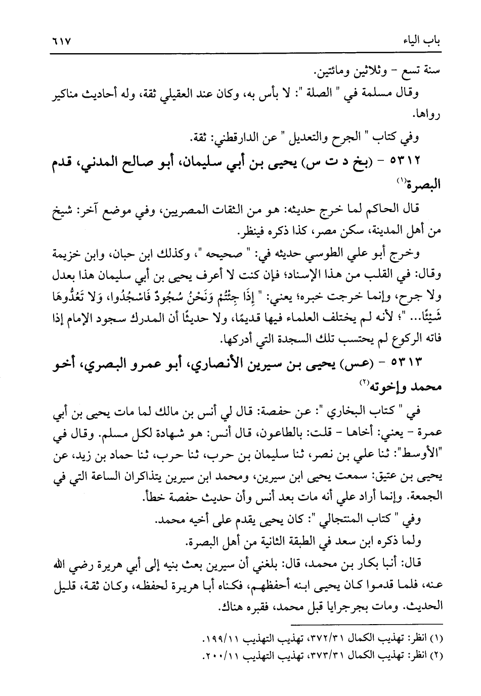 ٥٣١٣ - (عس) يحيى بن سيرين الأنصاري، أبو عمرو البصري، أخو محمد وإخوته (¬٢)