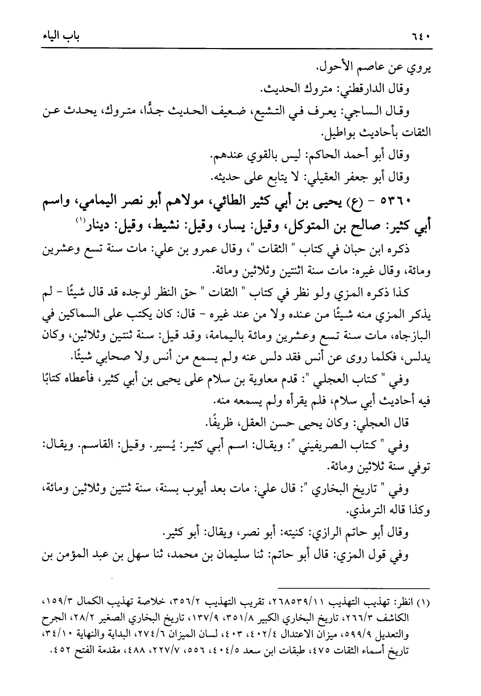 ٥٣٦٠ - (ع) يحيى بن أبي كثير الطائي، مولاهم أبو نصر اليمامي، واسم أبي كثير: صالح بن المتوكل، وقيل: يسار، وقيل: نشيط، وقيل: دينار (¬١)