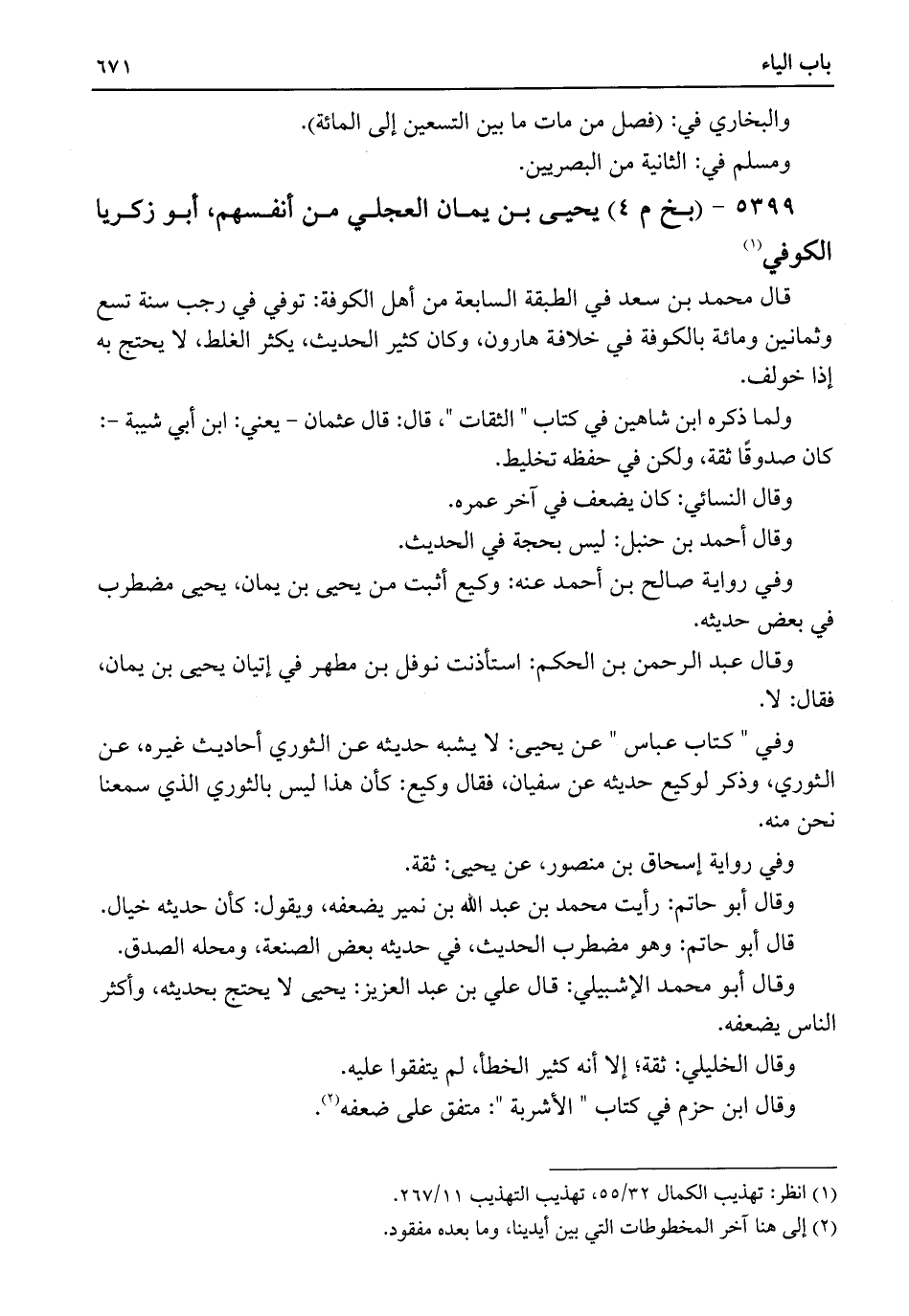 ٥٣٩٩ - (بخ م ٤) يحيى بن يمان العجلي من أنفسهم، أبو زكريا الكوفي (¬١)