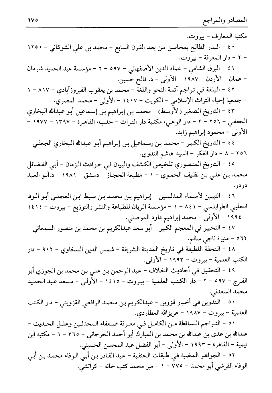 ٥٠ - التدوين في أخبار قزوين - عبد الكريم بن محمد الرافعي القزويني - دار الكتب العلمية - بيروت - ١٩٨٧ - عزيز اللَّه العطاردي.