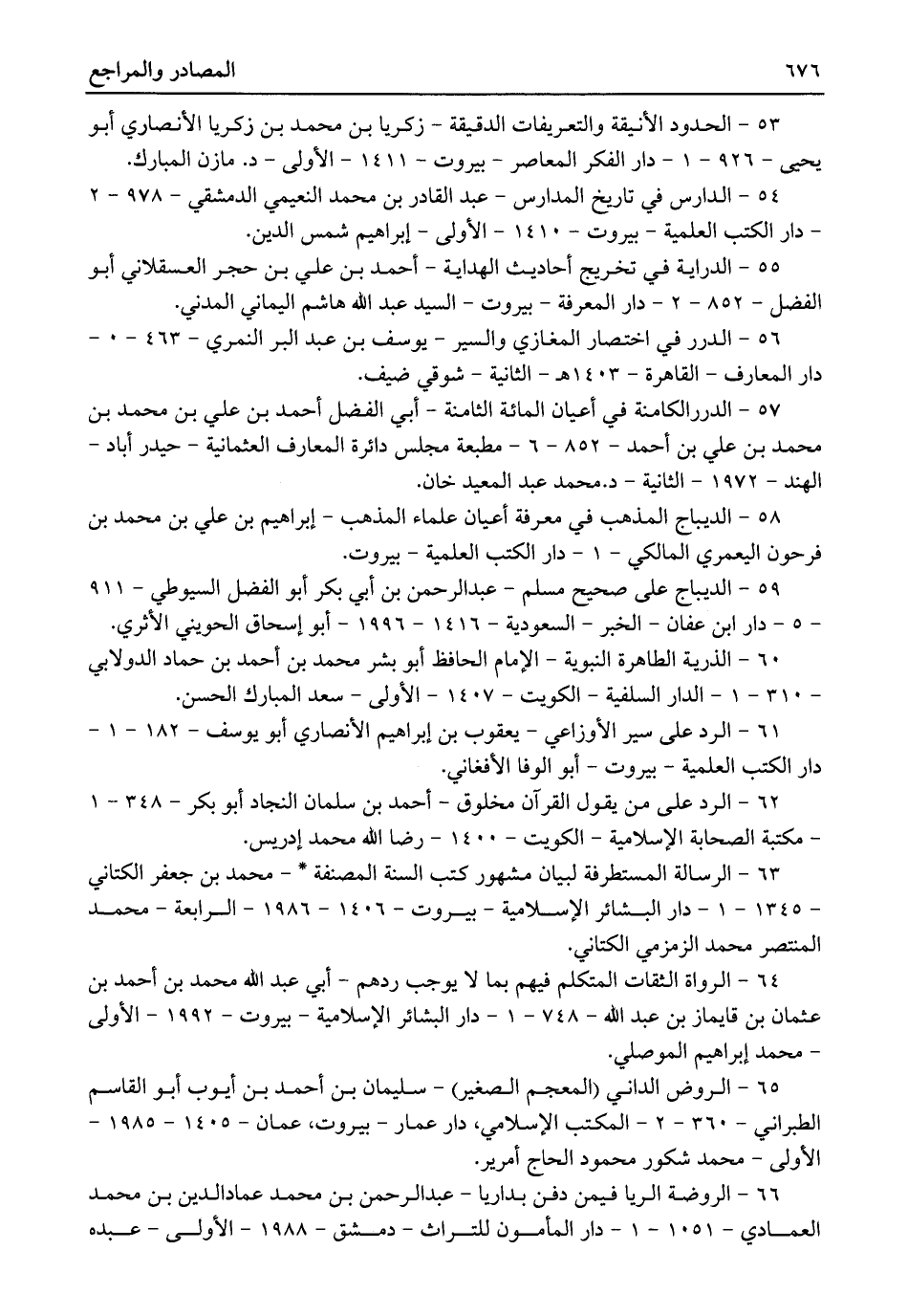 ٥٧ - الدرر الكامنة في أعيان المائة الثامنة - أبي الفضل أحمد بن علي بن محمد بن محمد بن علي بن أحمد - ٨٥٢ - ٦ - مطبعة مجلس دائرة المعارف العثمانية - حيدر أباد - الهند - ١٩٧٢ - الثانية - د. محمد عبد المعيد خان.