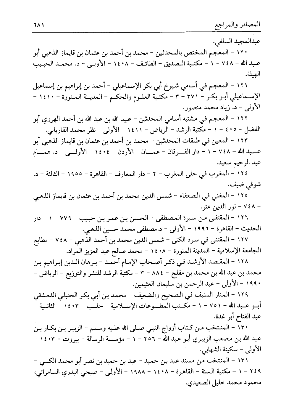 ١٢٧ - المقتنى في سرد الكنى - شمس الدين محمد بن أحمد الذهبي - ٧٤٨ - مطابع الجامعة الإسلامية - المدينة المنورة - ١٤٠٨ - محمد صالح عبد العزيز المراد.