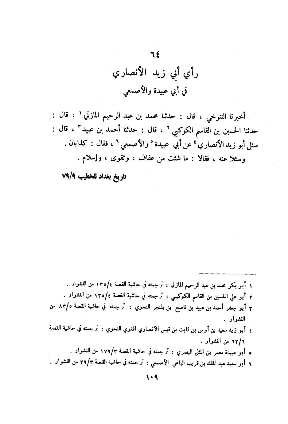64 رأي أبي زيد الأنصاري في أبي عبيدة والأصمعي