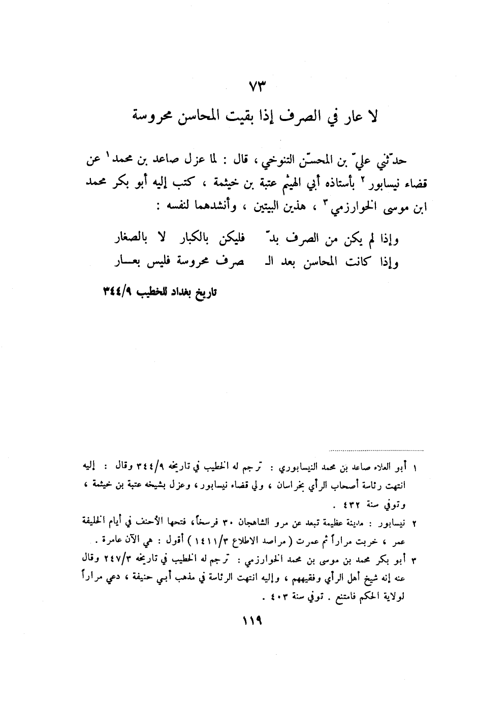 73 لا عار في الصرف إذا بقيت المحاسن محروسة